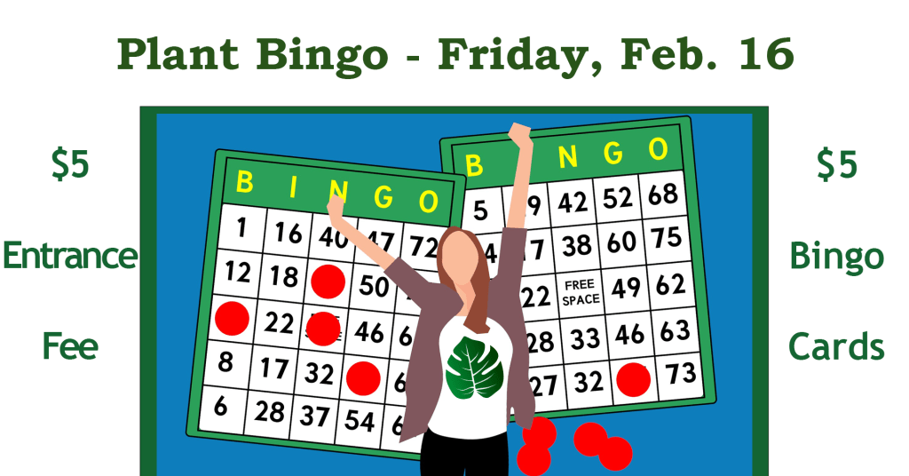 We will be hosting the one and only Kelly Gaskill, of Grow Girl Gifts, as she leads us in an entertaining night of bingo with plants as the prizes! Combining plants and bingo?! She is a GENIUS!