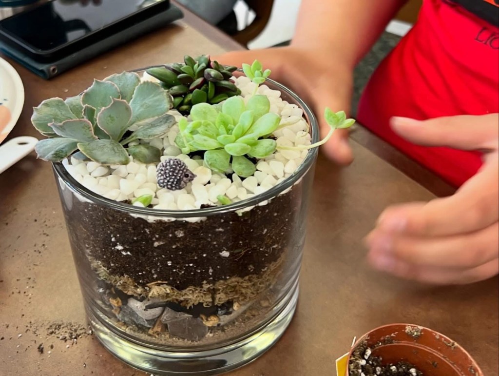 Learn the steps needed to create a succulent terrarium and then spend some time decorating with various accessories to make it your own!
